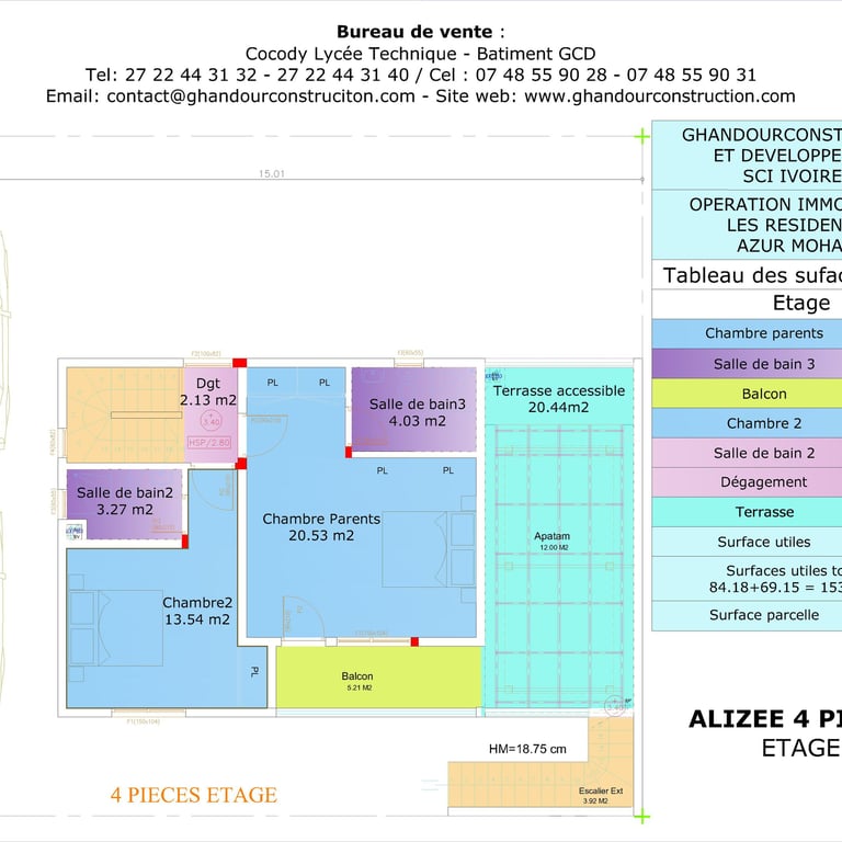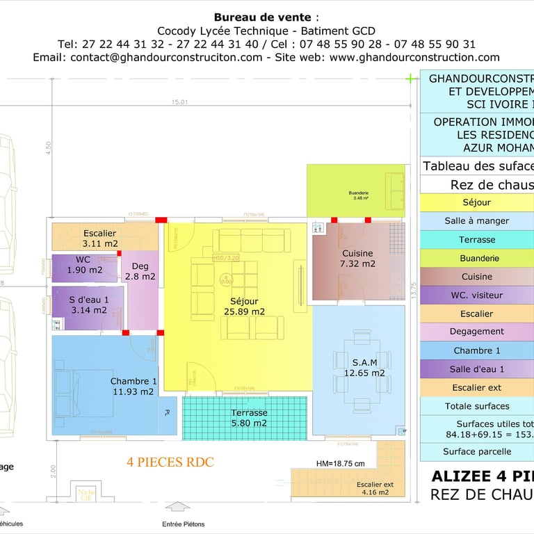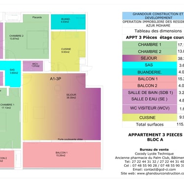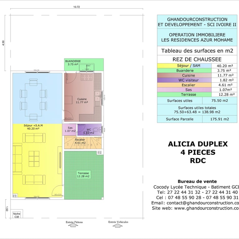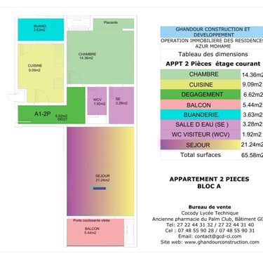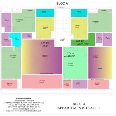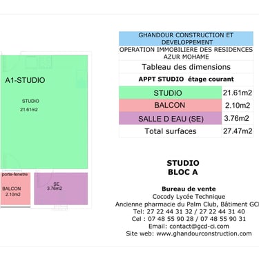 Appartements : 72 appartements de standing de type studio, 2 pièces et 3 pièces livrés clé en main