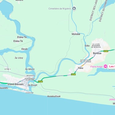 Située en bordure de la nouvelle autoroute d'Assinie, la cité offre une accessibilité parfaite pour rejoindre rapidement Abidjan, Grand-Bassam ou les plages d'Assinie.
